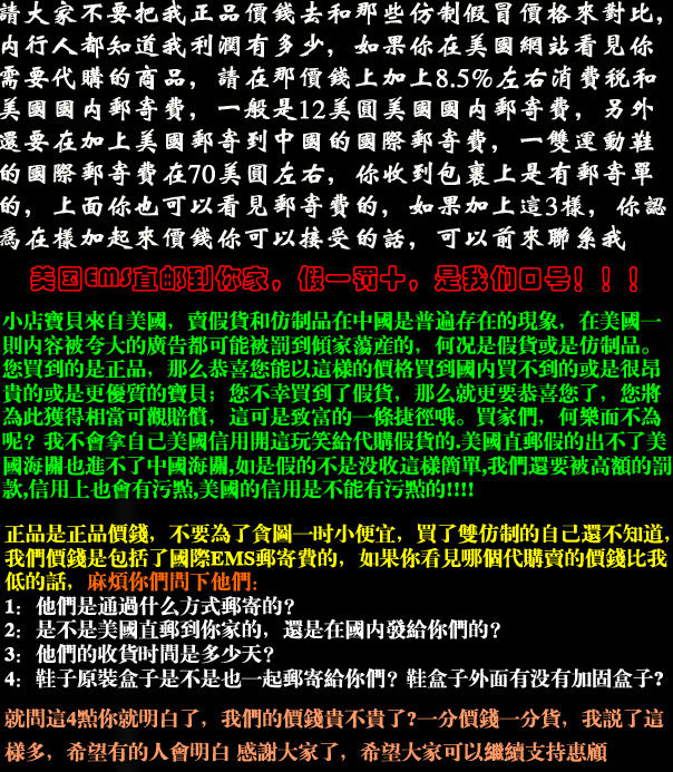 路途遥远,为了更好保护你们的爱鞋,我们会在鞋盒子外面都在加1个加固包装盒邮寄,虽然国际邮寄费会贵了许多,但是可以更好保护你们鞋子得到你们的认可,我们就已经非常满足了.