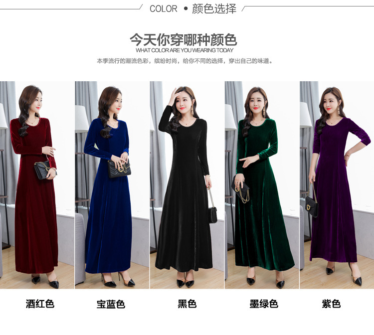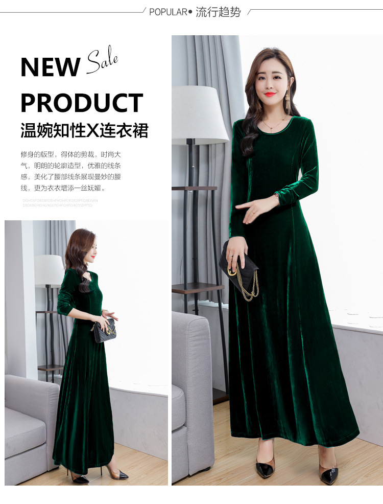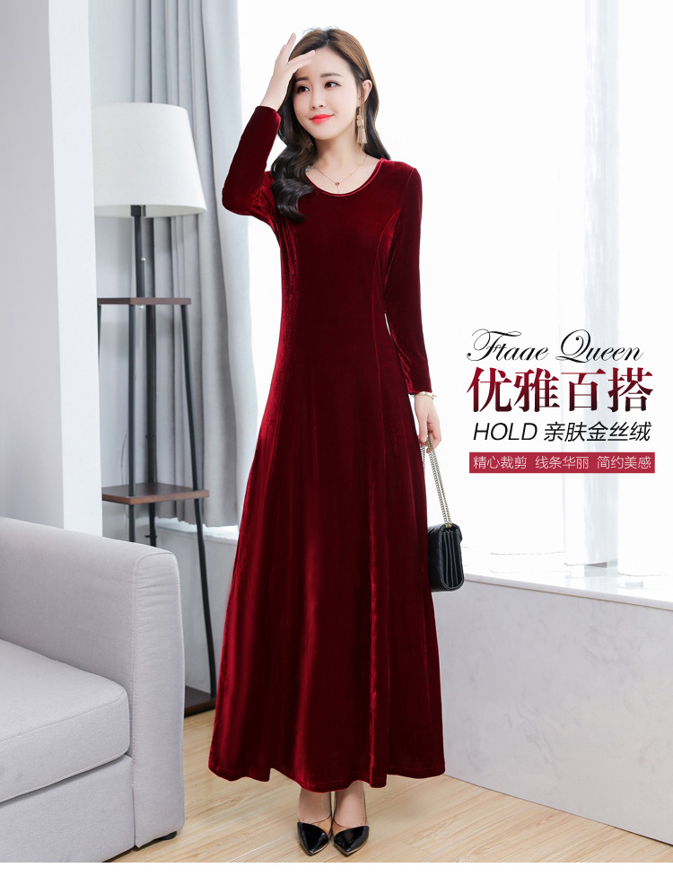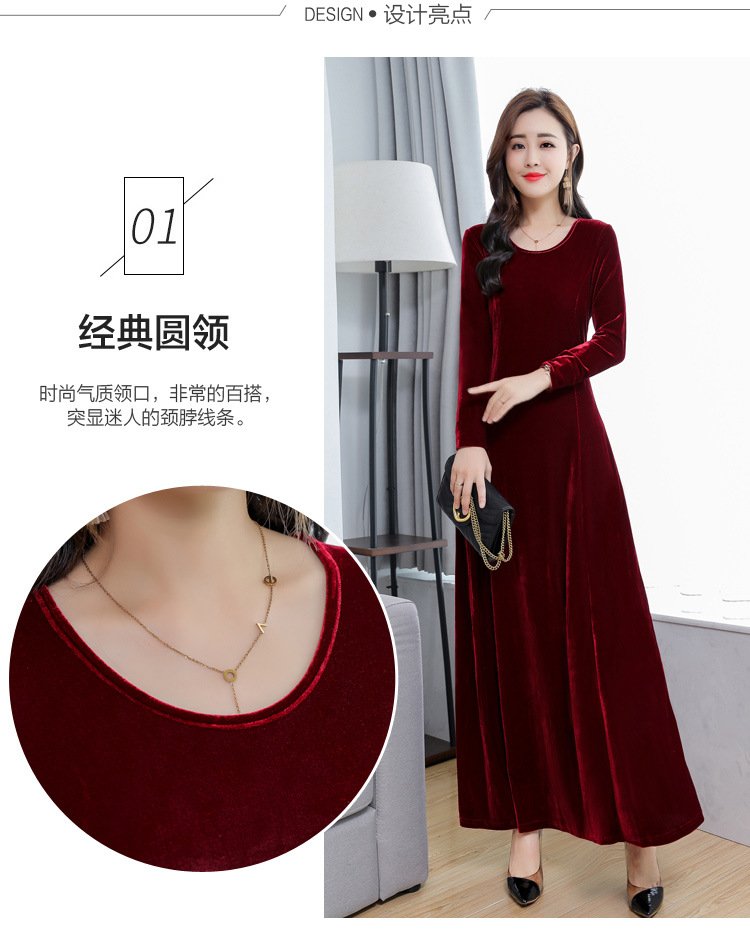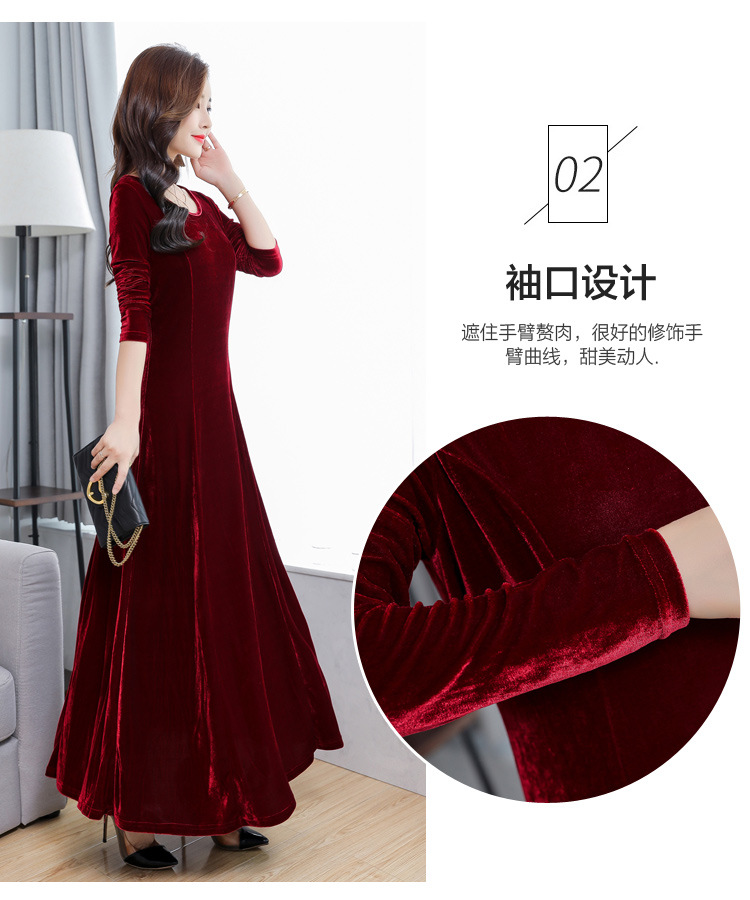 XXH-B32新款圆领长袖金丝绒连衣裙