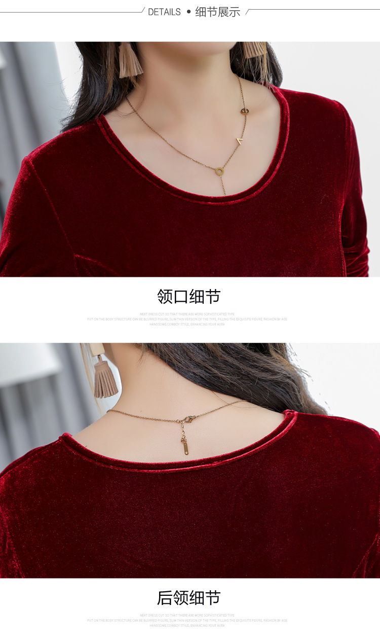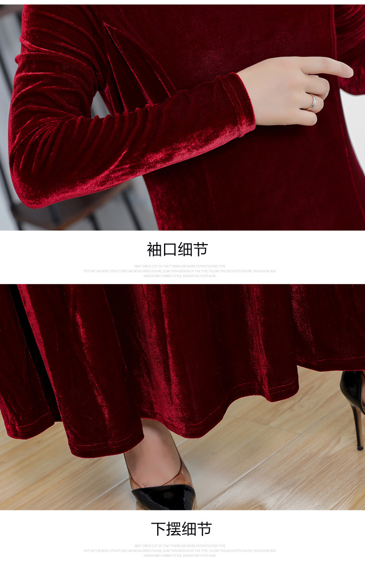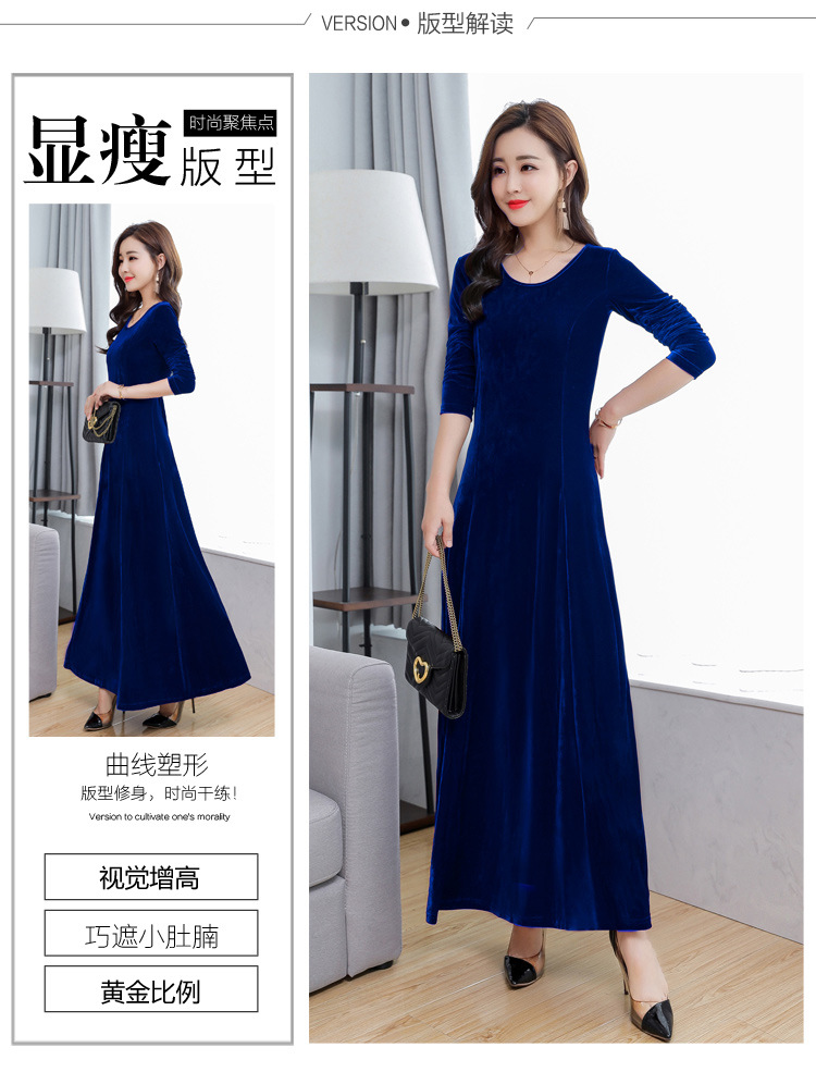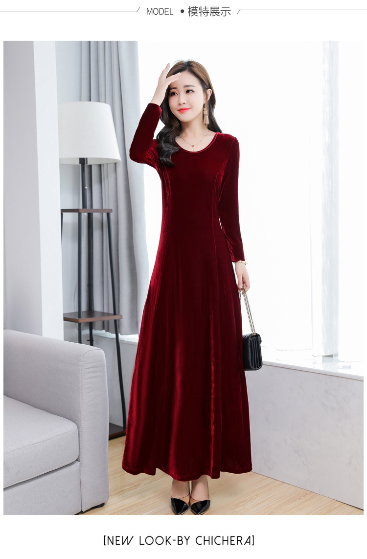 XXH-B32新款圆领长袖金丝绒连衣裙